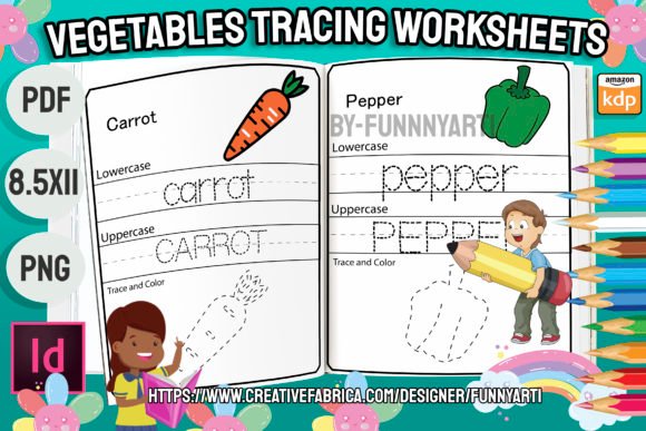 Vegetables Tracing Worksheets Vol. 1